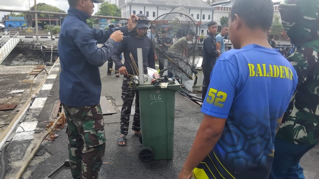 Prajurit Koarmada II melaksanakan aksi bersih-bersih dermaga di Daerah Basis Angkatan Laut (DBAL) Koarmada II, Rabu (18/2). Kegiatan ini difokuskan pada pembersihan area dermaga dan perairan sekitar sebagai upaya menjaga kebersihan laut serta menciptakan lingkungan pangkalan yang aman dan nyaman bagi aktivitas kedinasan.
