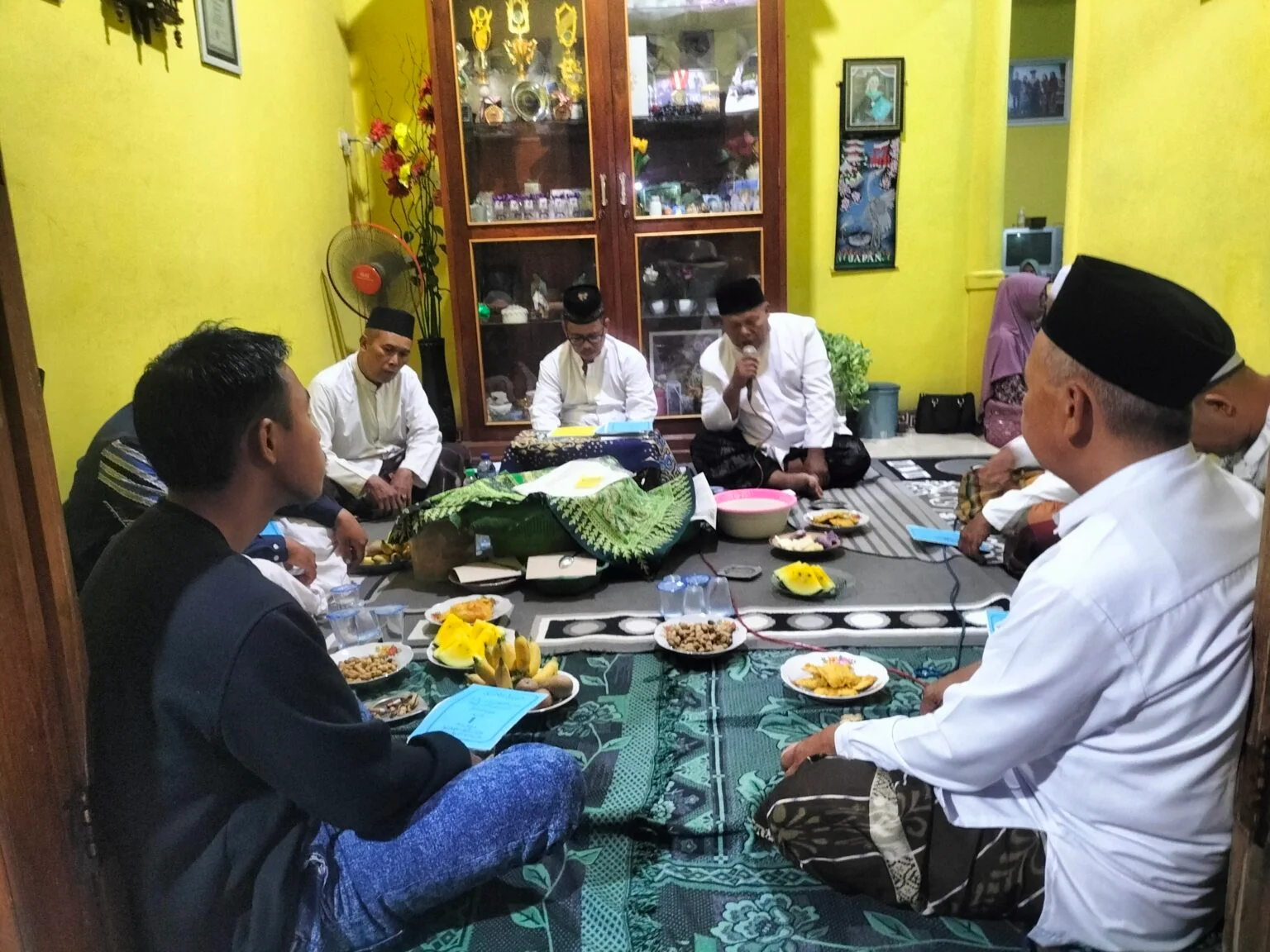 uasana penuh kekhidmatan dan kebersamaan tampak dalam acara rutinan Jamaah Manaqib Aula Nusantara Sidobandung, Kecamatan Balen, Kabupaten Bojonegoro, yang digelar pada Sabtu (18/10/2025) Acara ini sek...