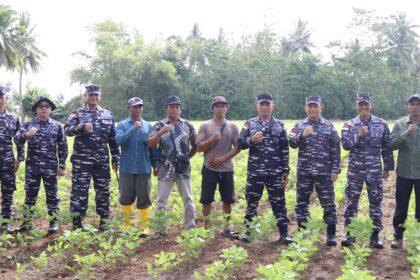 TNI AL. Kodaeral XI. Komandan Kodaeral XI, Laksda TNI Monang H. Sitompul, S.A.P., didampingi oleh Ketua Daerah Kodaeral XI Gabungan Jalasenastri Koarmada RI, Ny. Yuli Monang, meninjau lahan kedelai de...
