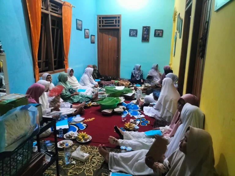 uasana penuh kekhidmatan dan kebersamaan tampak dalam acara rutinan Jamaah Manaqib Aula Nusantara Sidobandung, Kecamatan Balen, Kabupaten Bojonegoro, yang digelar pada Sabtu (18/10/2025)