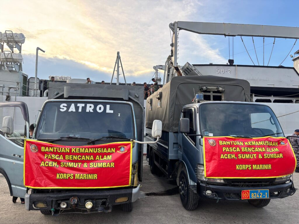 TNI Angkatan Laut melalui Komando Armada II kembali menunjukkan komitmennya dalam mendukung penanganan darurat bencana alam. KRI Teluk Banten-516 unsur Satuan Kapal Amfibi (Satfib) Koarmada II sandar di Dermaga 004 Bandar Deli, Belawan, Sumatera Utara, Senin (29/12), untuk melaksanakan debarkasi bantuan kemanusiaan dalam rangka mendukung penanganan darurat bencana alam di wilayah Provinsi Aceh, Sumatera Utara, dan Sumatera Barat.