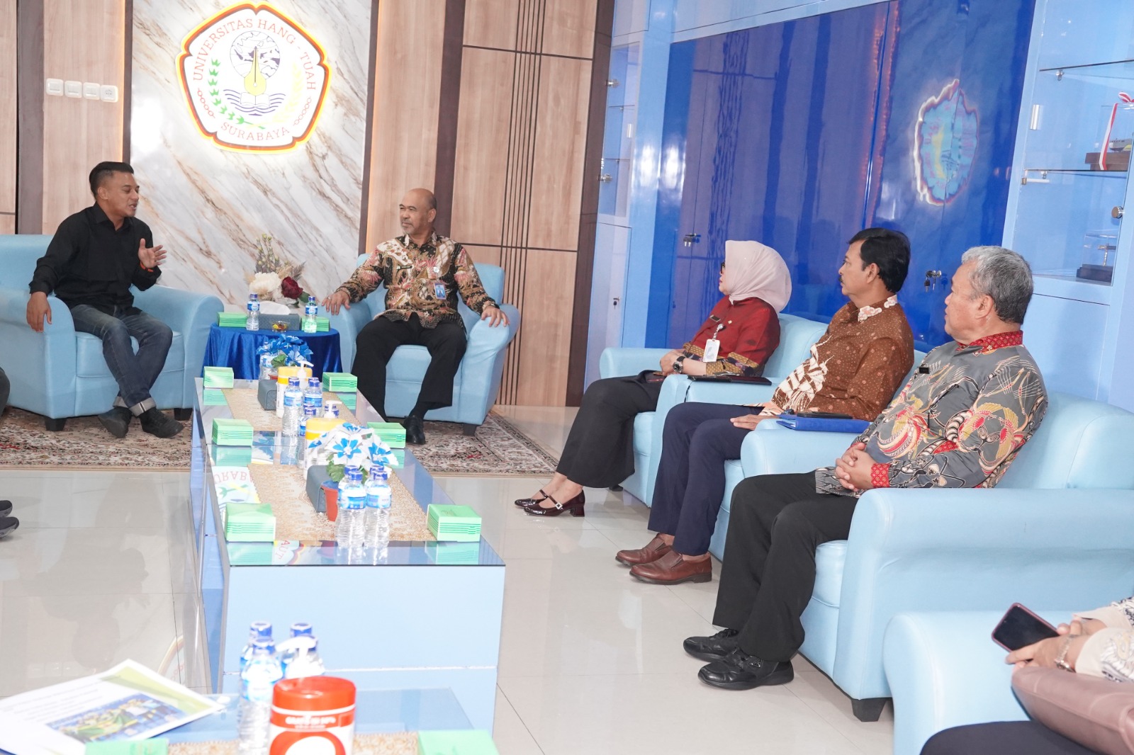 Kegiatan ini dihadiri Rektor Universitas Hang Tuah Laksamana Muda TNI (Purn) Dr. Ir. Avando Bastari, M.Phil., M.Tr.Opsla., IPM., ASEAN Eng., didampingi Wakil Rektor I, Wakil Rektor II, dan Wakil Rektor III, serta Kepala Kantor Kerja Sama dan KUI dan Kepala BKKA Universitas Hang Tuah.